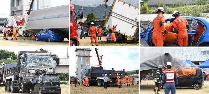 当消防本部屋外訓練場において、NPO法人全日本レッカー協会と初めての合同訓練を実施しました。この訓練