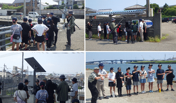 徳島大学の上月教授、NHKの安田アナウンサーと消防本部から今切川まで歩きながら、津波避難時の危険個所や避難方法について学びました。